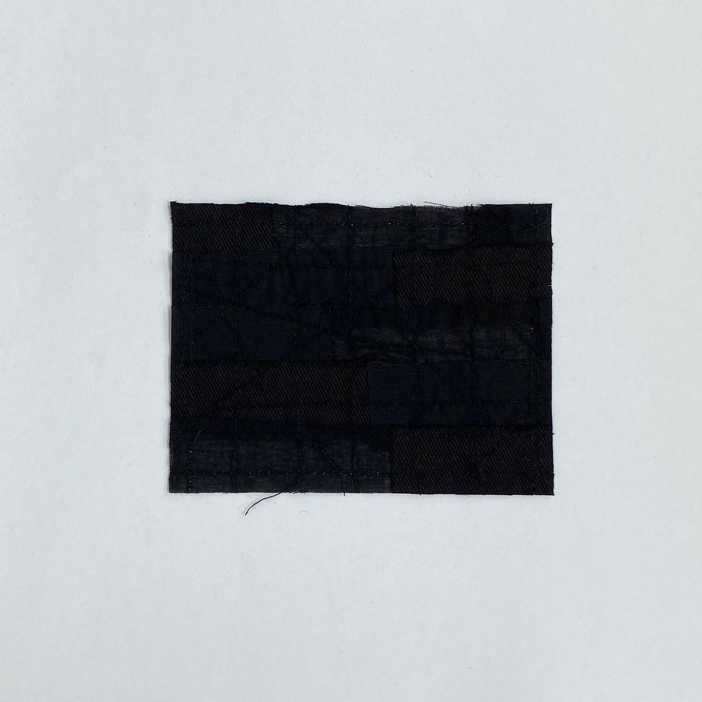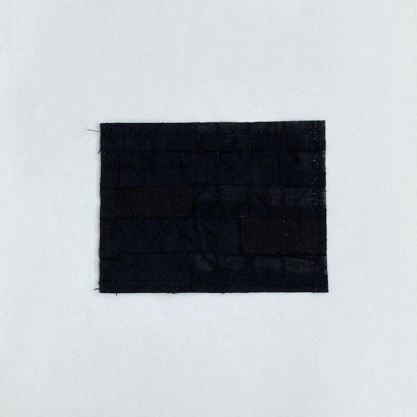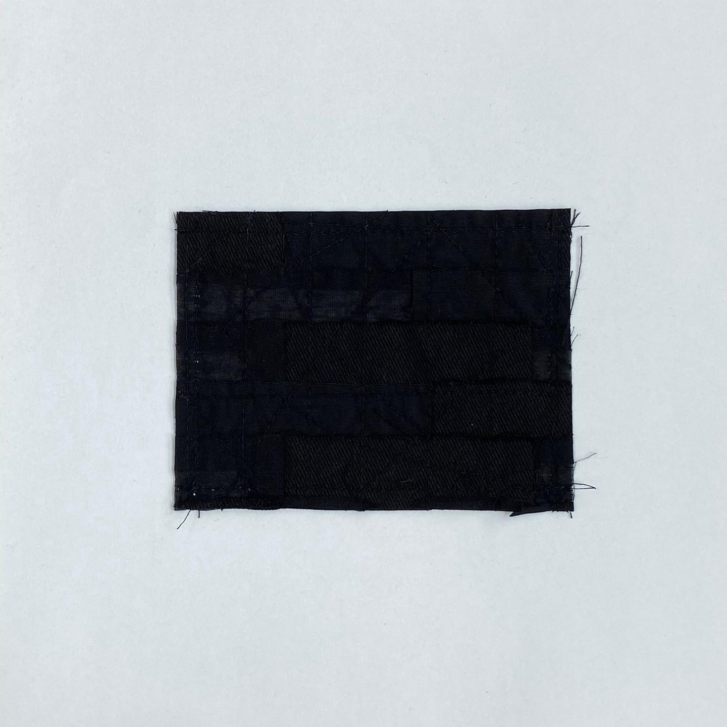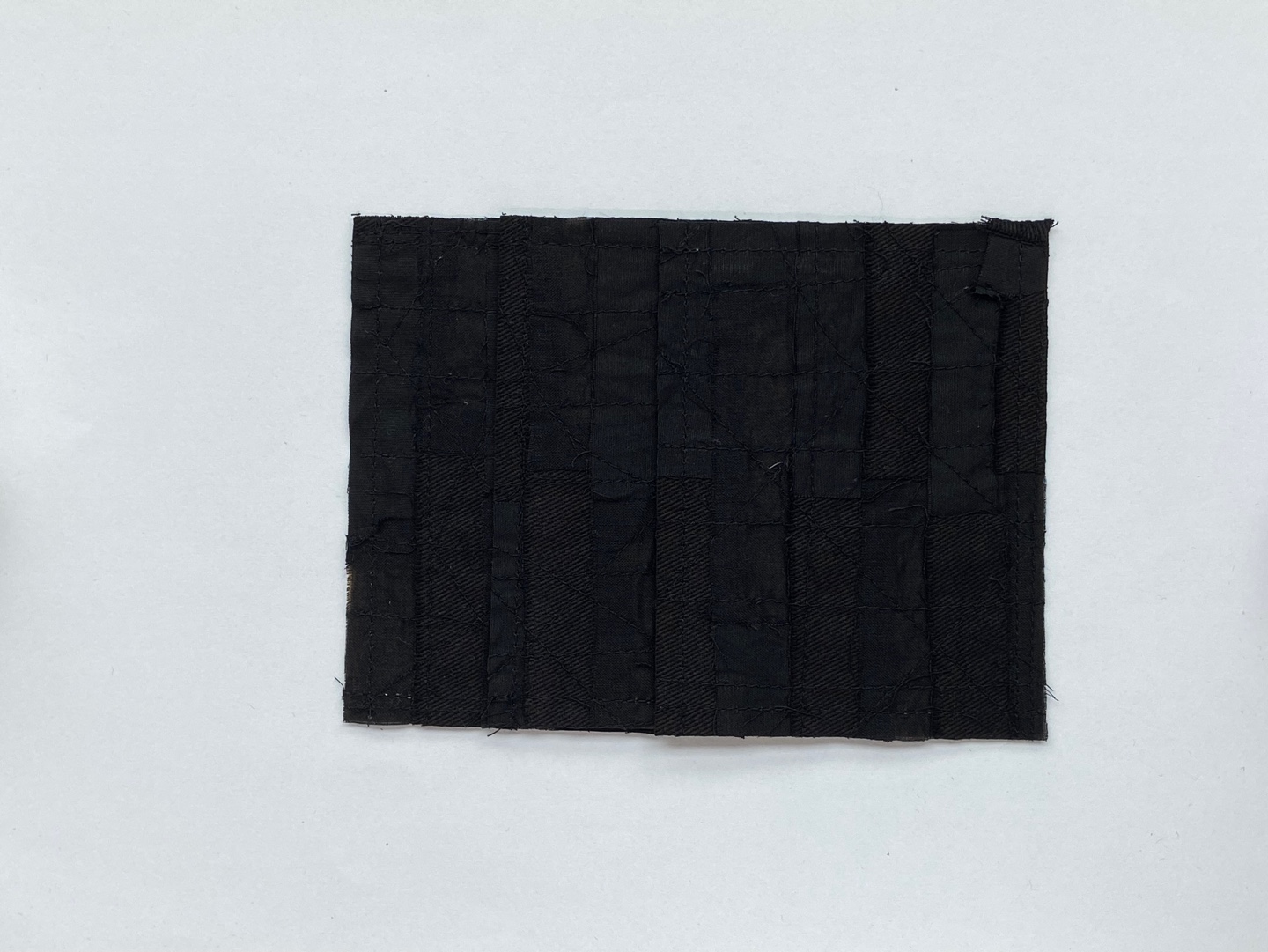 비침의 정도가 서로 다른 세 가지 면 원단을 2x7cm로 잘라 겹치게 배열하여 패치워크했습니다.