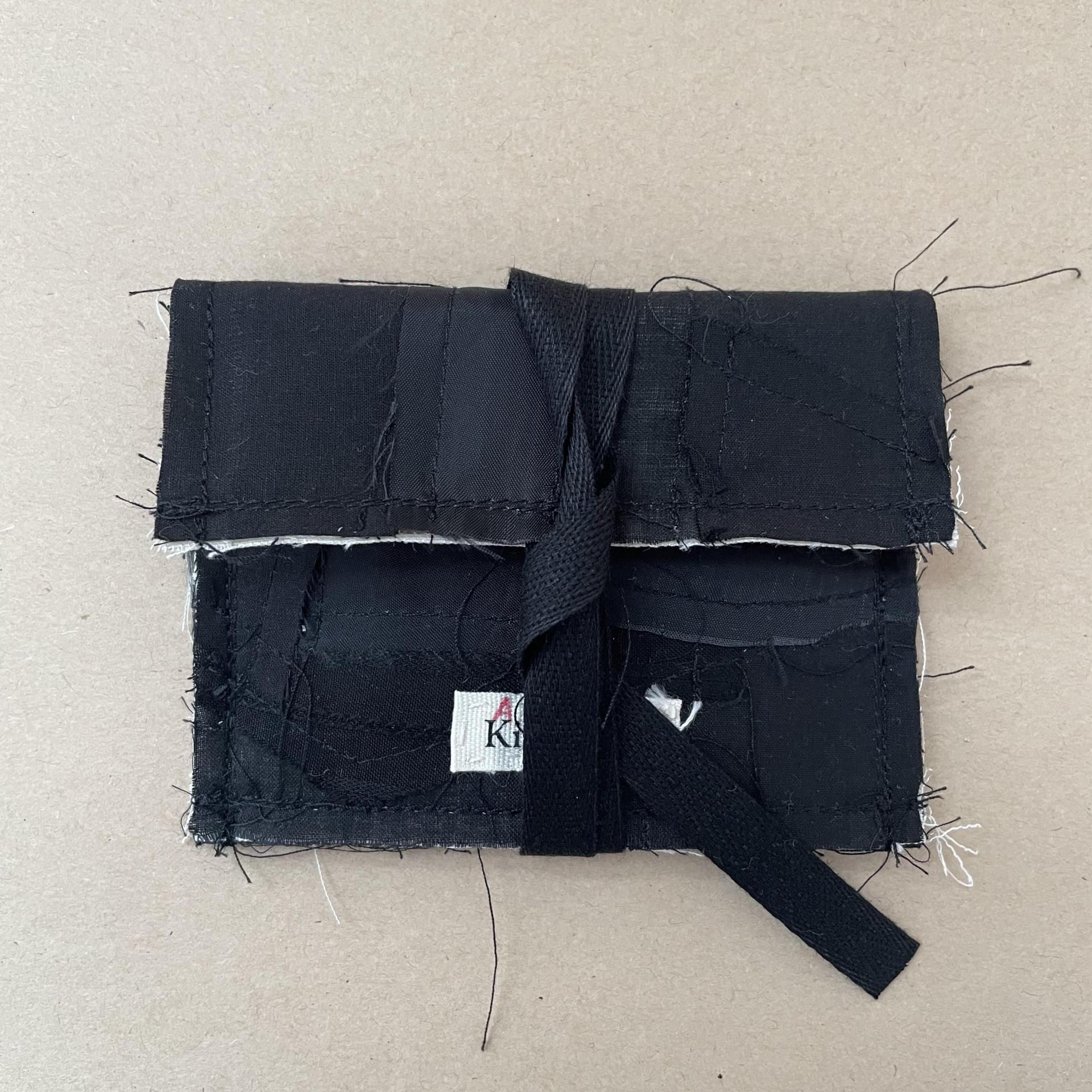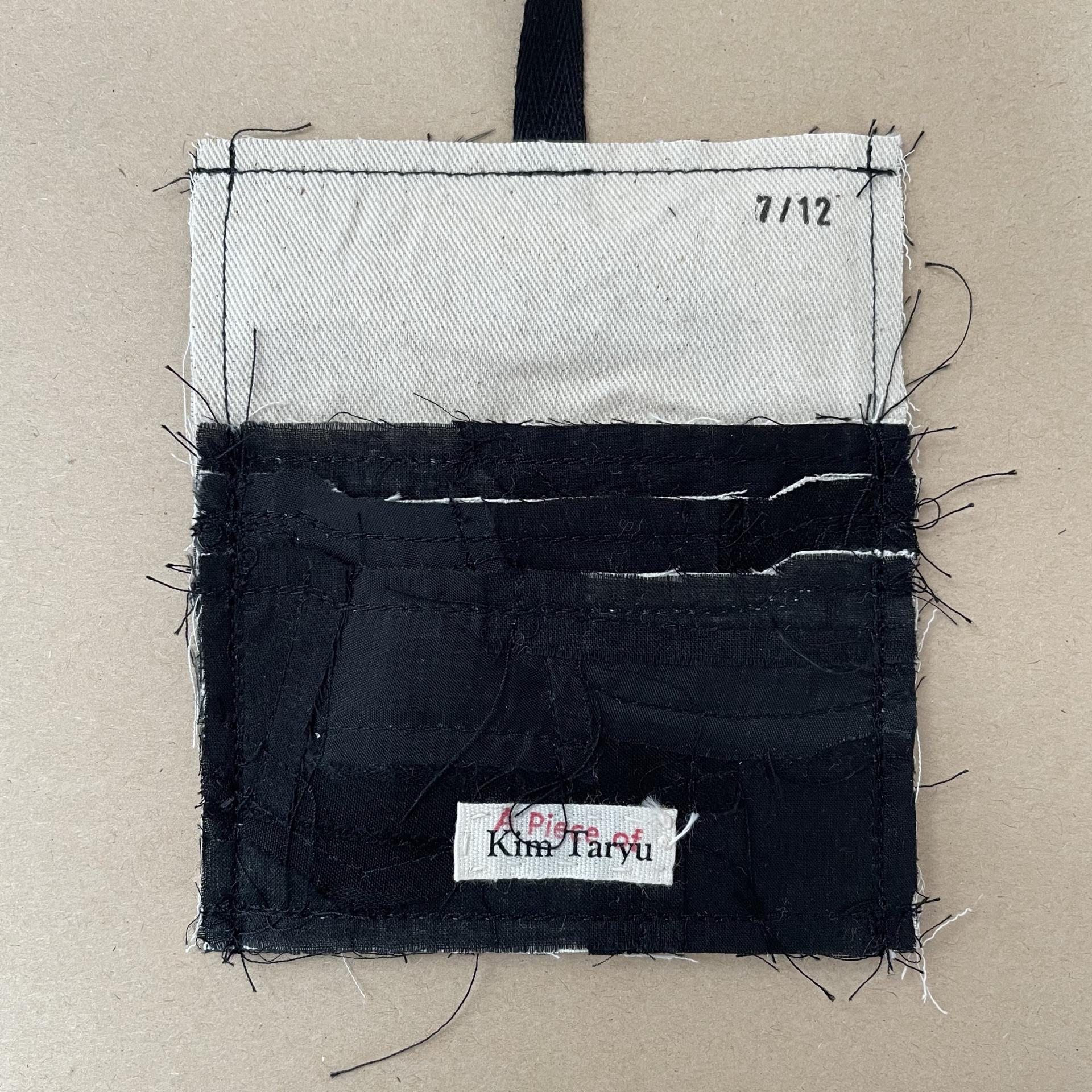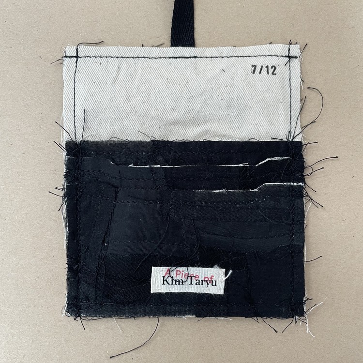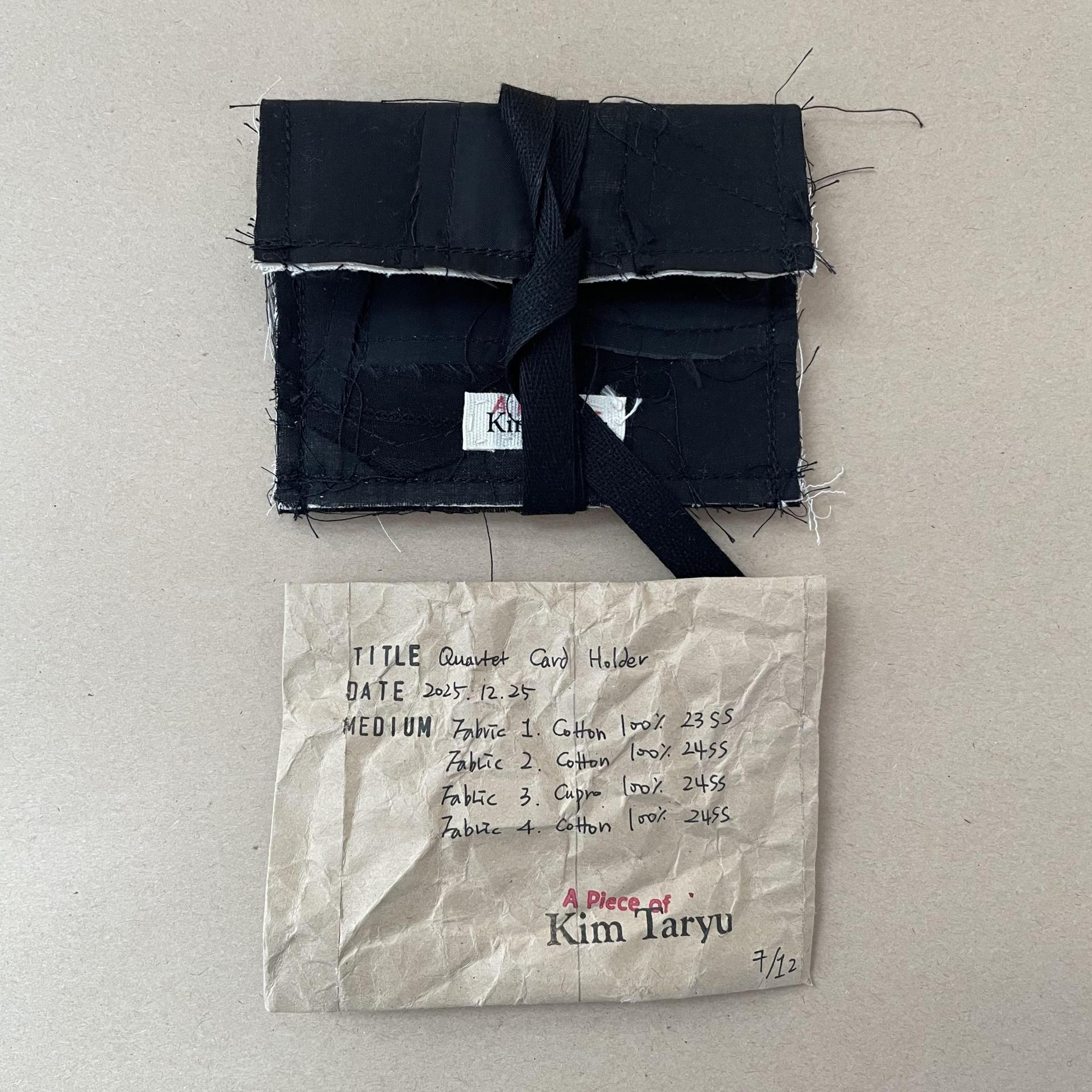 콰르텟 카드홀더는 김타류 23SS 컬렉션에 쓰인 코튼100% 원단과 24SS 컬렉션에 쓰인 두종류의 코튼 100% 원단 그리고 큐프라100% 원단, 총 네가지 원단 자투리를 패치워크하여 만들었습니다. 패키징은 자투리 패턴지를 활용하여 만들었습니다.