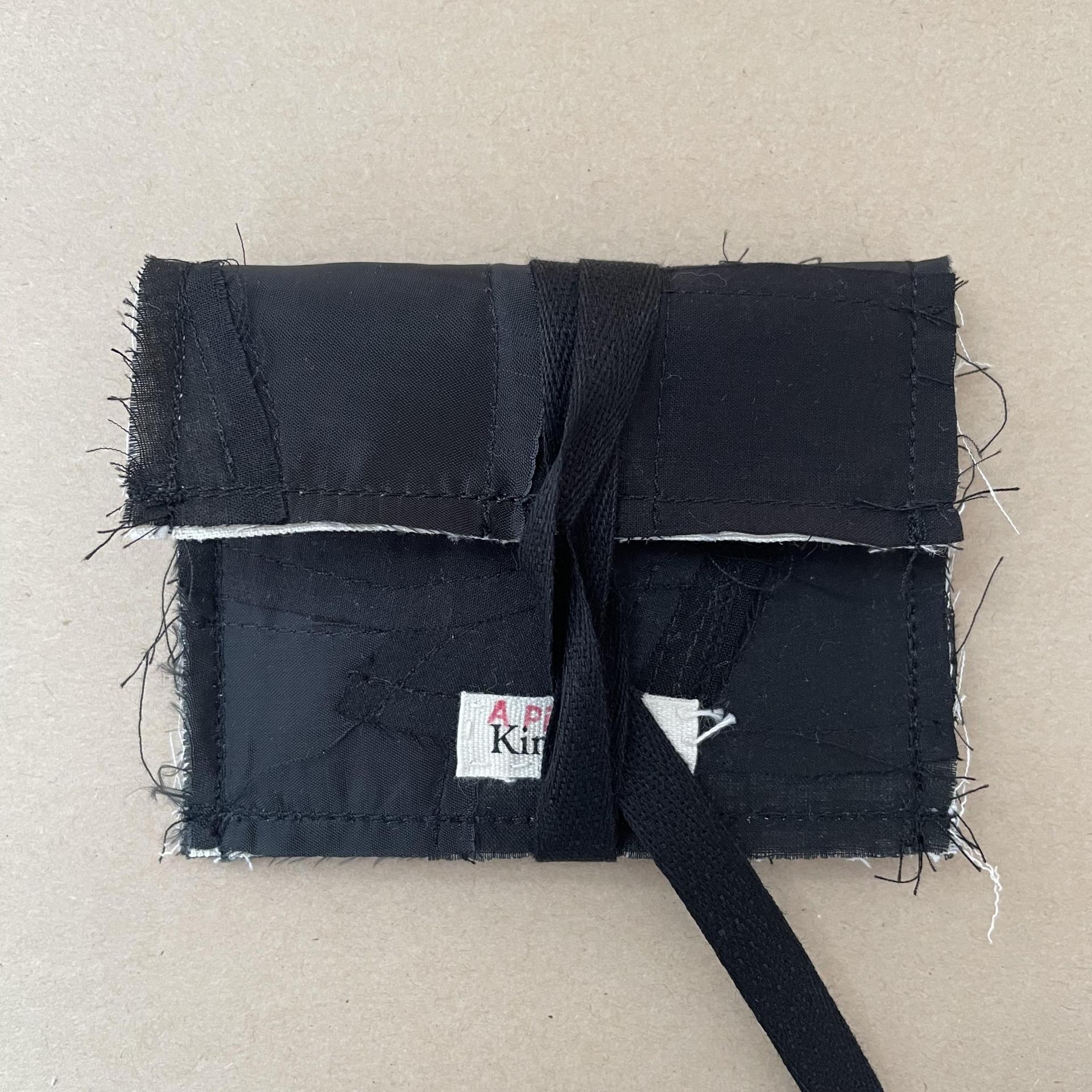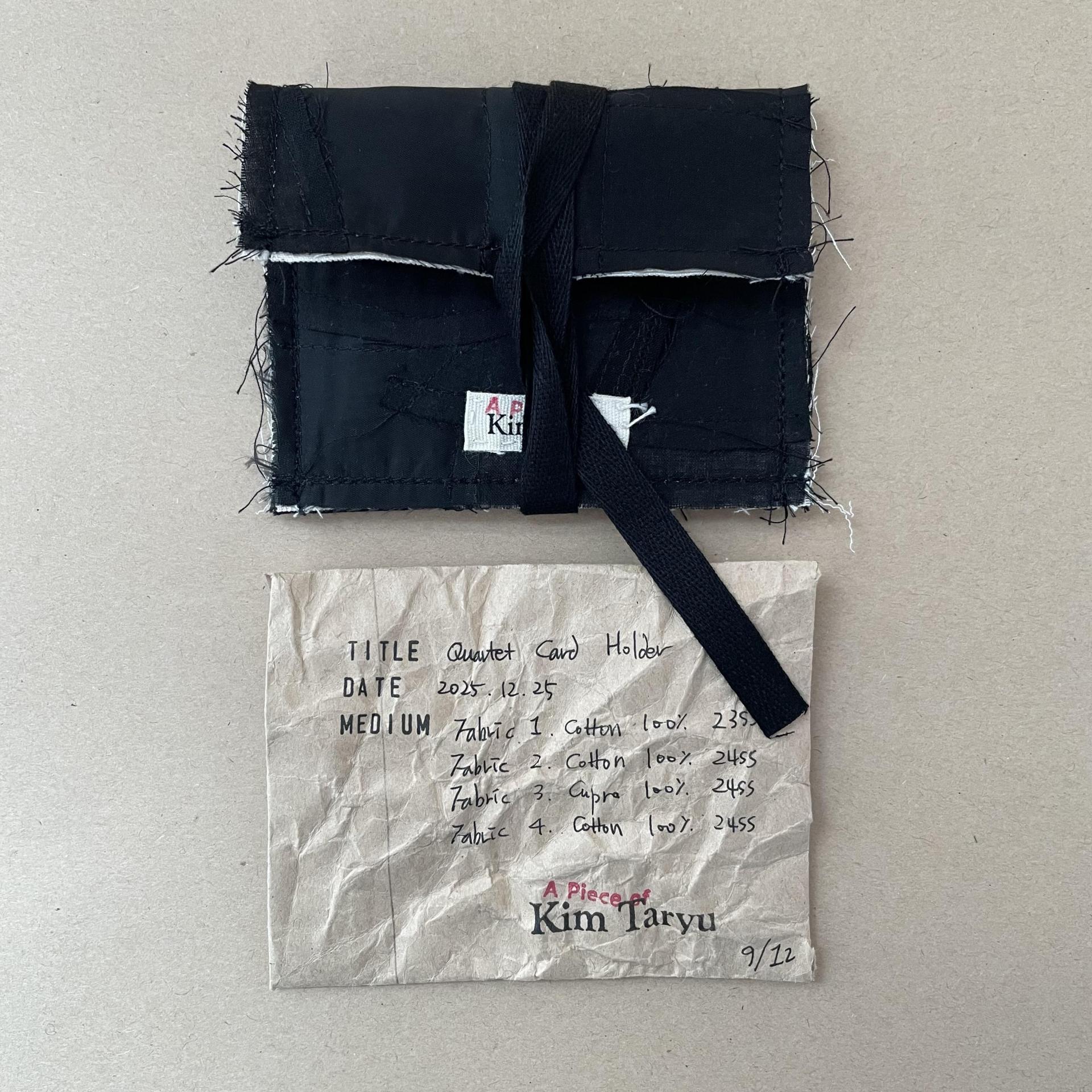 콰르텟 카드홀더는 김타류 23SS 컬렉션에 쓰인 코튼100% 원단과 24SS 컬렉션에 쓰인 두종류의 코튼 100% 원단 그리고 큐프라100% 원단, 총 네가지 원단 자투리를 패치워크하여 만들었습니다. 패키징은 자투리 패턴지를 활용하여 만들었습니다.