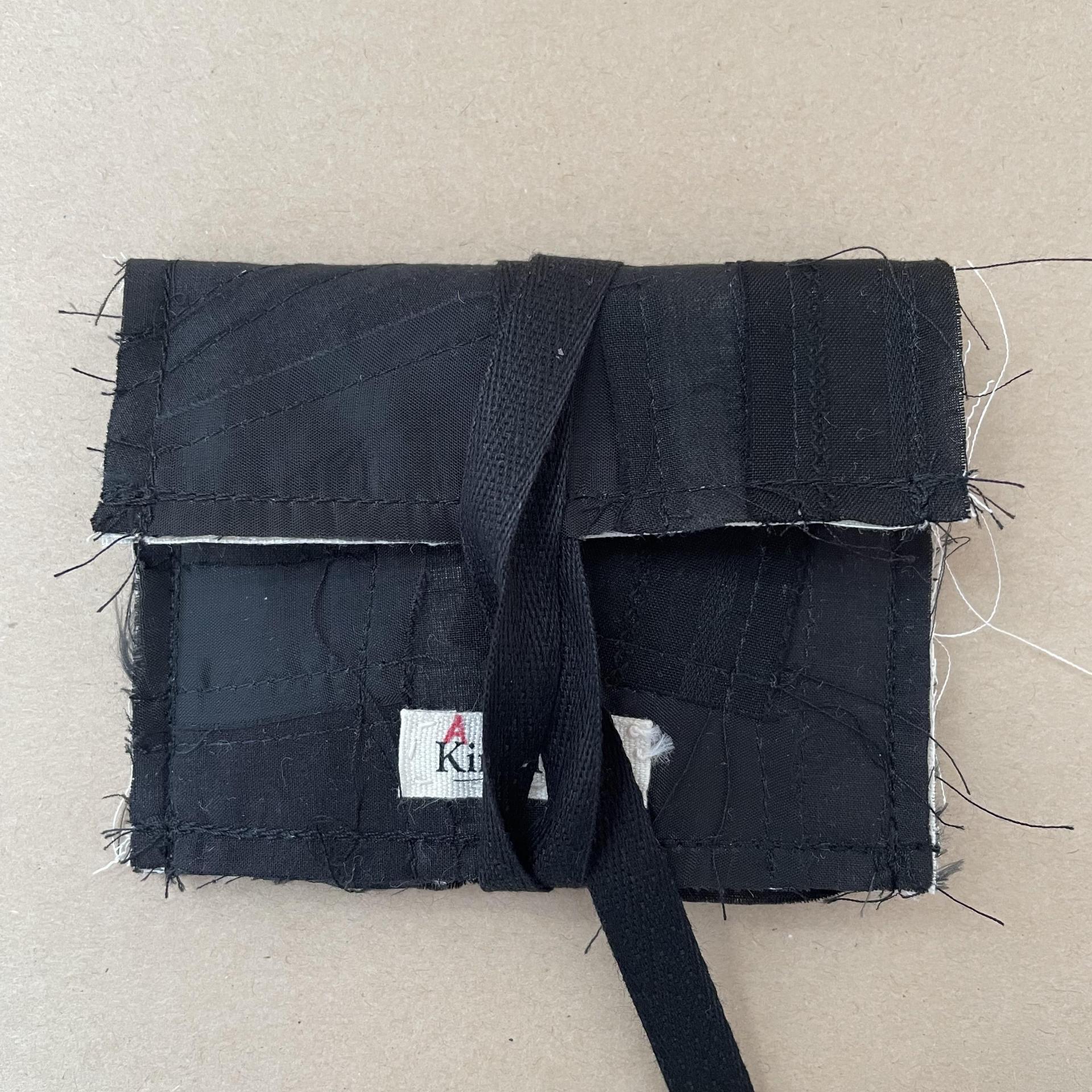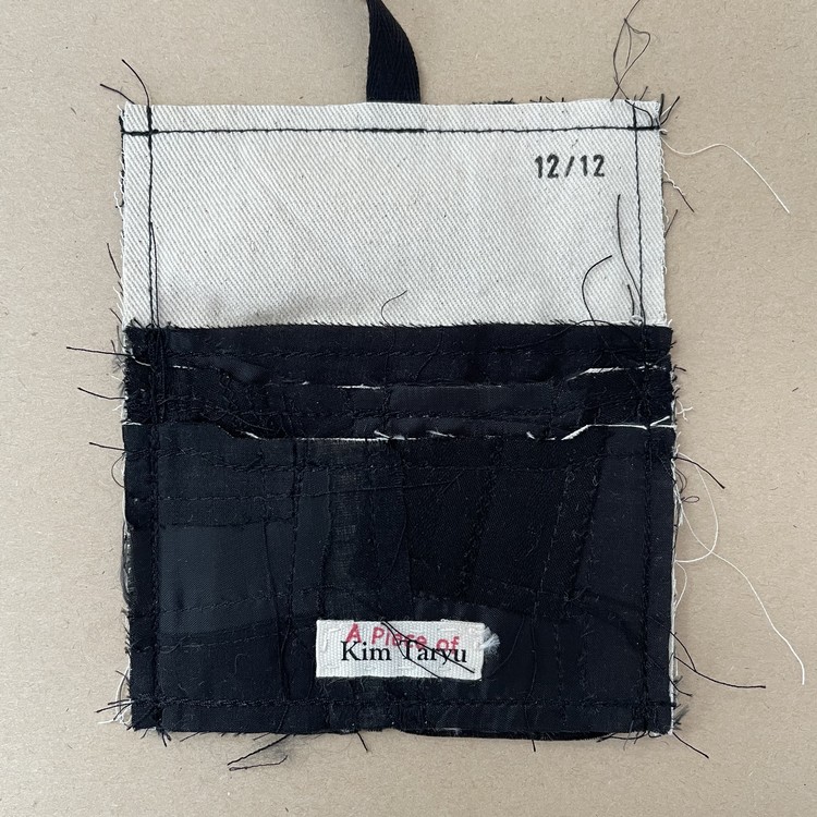 콰르텟 카드홀더는 김타류 23SS 컬렉션에 쓰인 코튼100% 원단과 24SS 컬렉션에 쓰인 두종류의 코튼 100% 원단 그리고 큐프라100% 원단, 총 네가지 원단 자투리를 패치워크하여 만들었습니다. 패키징은 자투리 패턴지를 활용하여 만들었습니다.